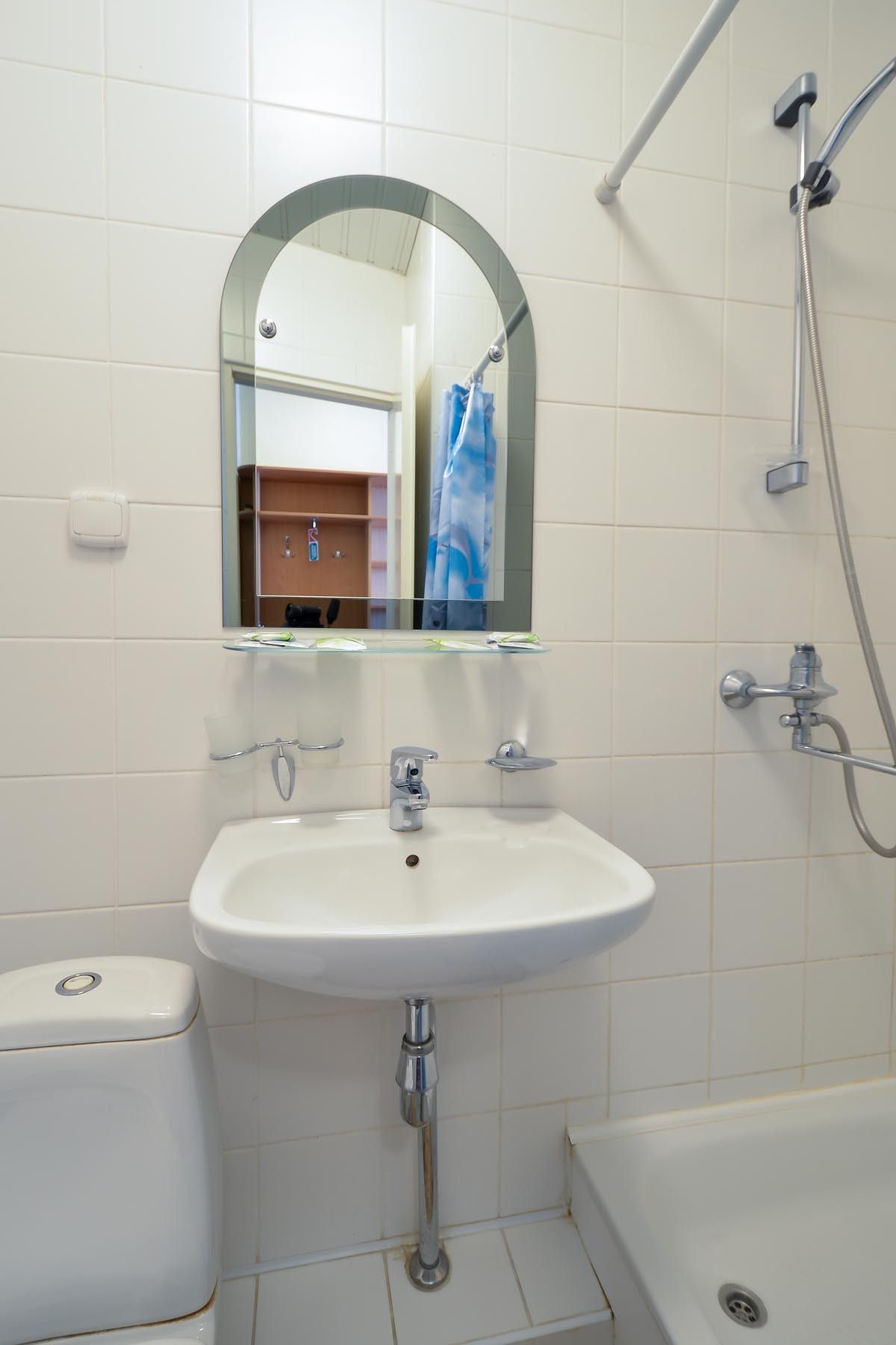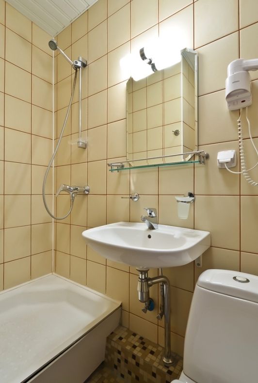 Санузел: душ, раковина, унитаз, фен