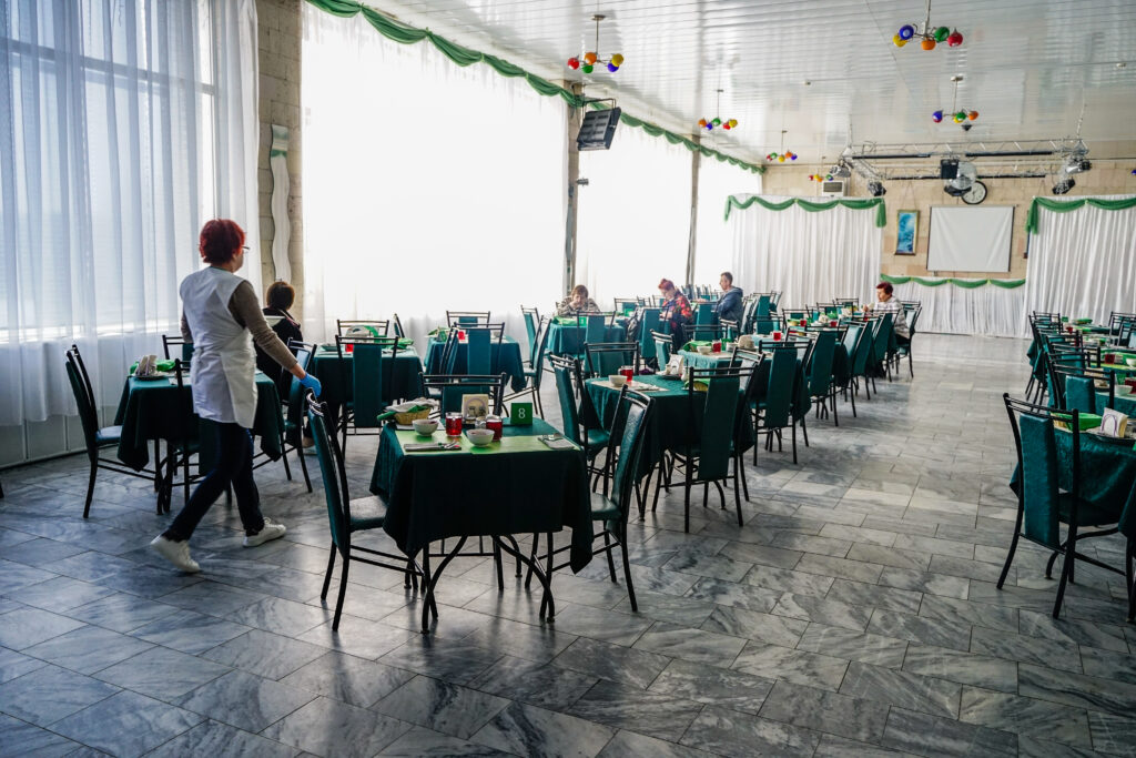 Наши столовые рассчитаны на 500 посадочных мест. Здесь наши гости могут позавтракать, пообедать, поужинать или участвовать в особых пищевых мероприятиях, предусмотренных диетическим режимом.